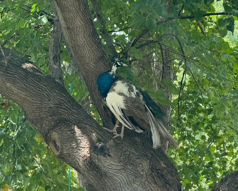 In the meantime, the Peacock named Prince Caspian (or Pied – as I like to call him) found other roosting places.