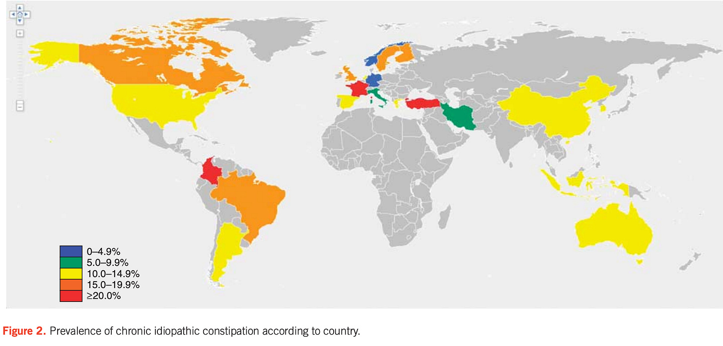 Over the last year, I’ve received quite a few correspondences from readers asking me to write about constipation. This I believe is reflective of how widespread but rarely discussed constipation is, especially as one becomes older (where it often becomes a primary concern of everyday life). Likewise, the primary diagnosis for constipation is “chronic idiopathic constipation” (CIC). Idiopathic, for reference, means “no one knows why” which is remarkable given that existing studies find between 9-20% of adults (averaging at 14%) have CIC. This figure in turn varies greatly by country: